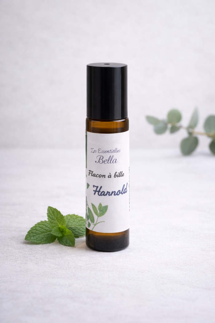Ingrédients : Huile d’amande douce, HE de menthe poivrée, HE d’eucalyptus citroné, Vitamine E