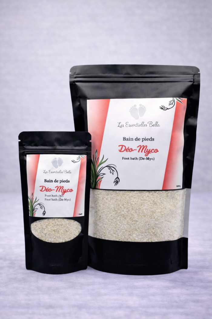 Utilisation : Mettre 3 c. à table dans 2-3 litres d’eau tiède à chaude ou lire les instructions du sachet choisi. Relaxer vos pieds 15 minutes et bien essuyer vos pieds et les entres-orteils. Si éruption cutanée survient, cessez les bains.