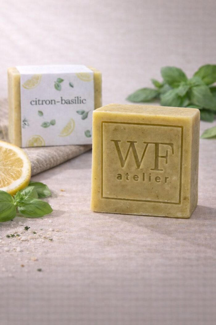 Le savon citron-basilic, avec son parfum frais et herbacé, est l’allié parfait pour neutraliser les odeurs de cuisine tout en apportant une touche de fraîcheur à vos mains. Formulé à partir d’ingrédients 100 % végétaux de première qualité, nos savons contiennent des huiles et beurres sélectionnés ainsi que des huiles essentielles soigneusement choisies. Nos produits respectent la nature tout en offrant une expérience sensorielle unique !