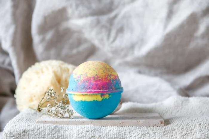 • Effervescence Dynamique : Dès son contact avec l’eau, la bombe de bain se dissout en une mousse onctueuse et colorée.