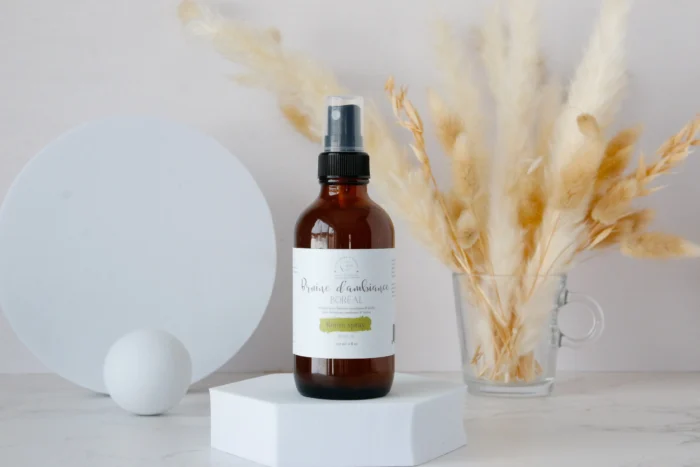 Ingrédients : Alcohol denat/alcool denaturé, aqua (water/eau), polysorbate, mentha spicata(mint/menthe) herb oil, abies balsamea (fir balsam/sapin baumier) needle oil,eucalyptus globulus (eucalyptus) leaf oil, citrus limon(lemon/citron) fruit extract.