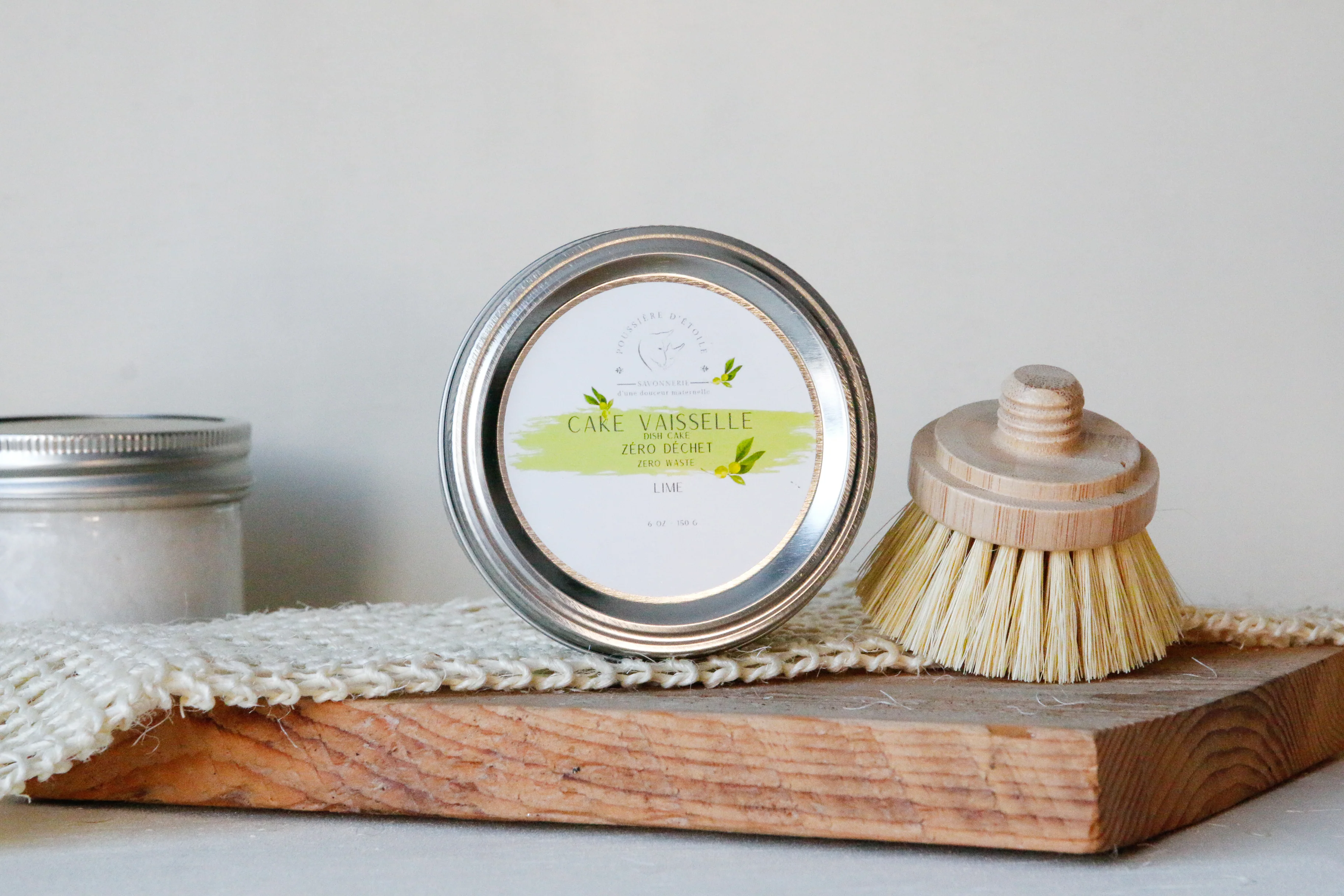 Offert dans un joli pot en verre réutilisable, mon savon à vaisselle solide, économique, 100 % d’origine naturelle, biodégradable et respectueux de l’environnement, ne contient que très peu d’ingrédients !