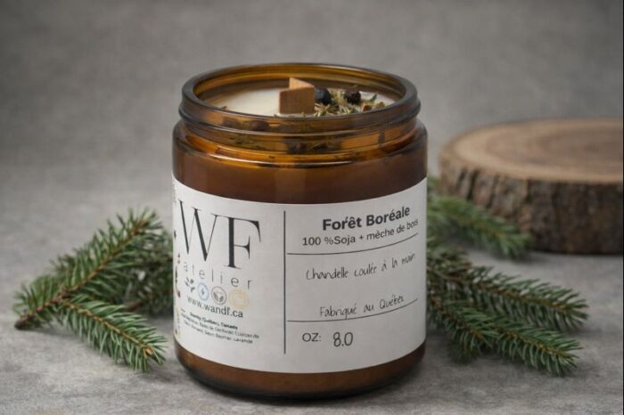 Allumez-la et laissez entrer la forêt. Le parfum profond et apaisant de la forêt boréale canadienne transforme votre espace en un lieu de confort chaleureux. Chaque chandelle est fabriquée à la main avec une cire et des huiles 100 % naturelles. Une invitation à ralentir, à respirer et à se reconnecter à la nature ! Cire de soya avec tige de bois qui crépite. Coulée à la main.