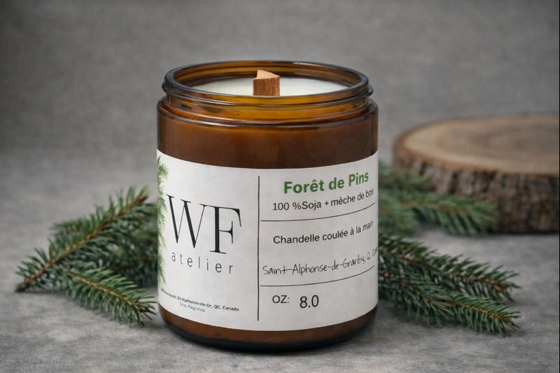 Allumez-la et laissez la forêt entrer. Le parfum profond et apaisant des aiguilles de pin transforme votre espace en clairière tranquille. Chaque chandelle est fabriquée à la main avec une cire et des huiles 100 % naturelles. Une invitation à ralentir, respirer et se reconnecter à la nature ! Cire de soya avec tige de bois qui crépite. Coulée à la main.
