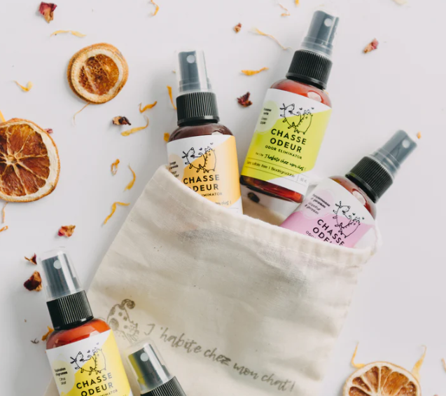Découvrez les chasse odeurs redoutables prédateurs de mauvaises odeurs déclinés en cinq fragrances signatures. Tout comme le ménage, la guerre aux mauvaises odeurs est toujours à recommencer ! Pourquoi ne pas trouver un peu de répit dans des choix intelligents, comme les chasse-odeurs de J’habite chez mon chat ! Son principal ingrédient breveté permet non seulement de capter les mauvaises odeurs, mais de les faire disparaître complètement par les enzymes présentes qui décomposent les molécules malodorantes !