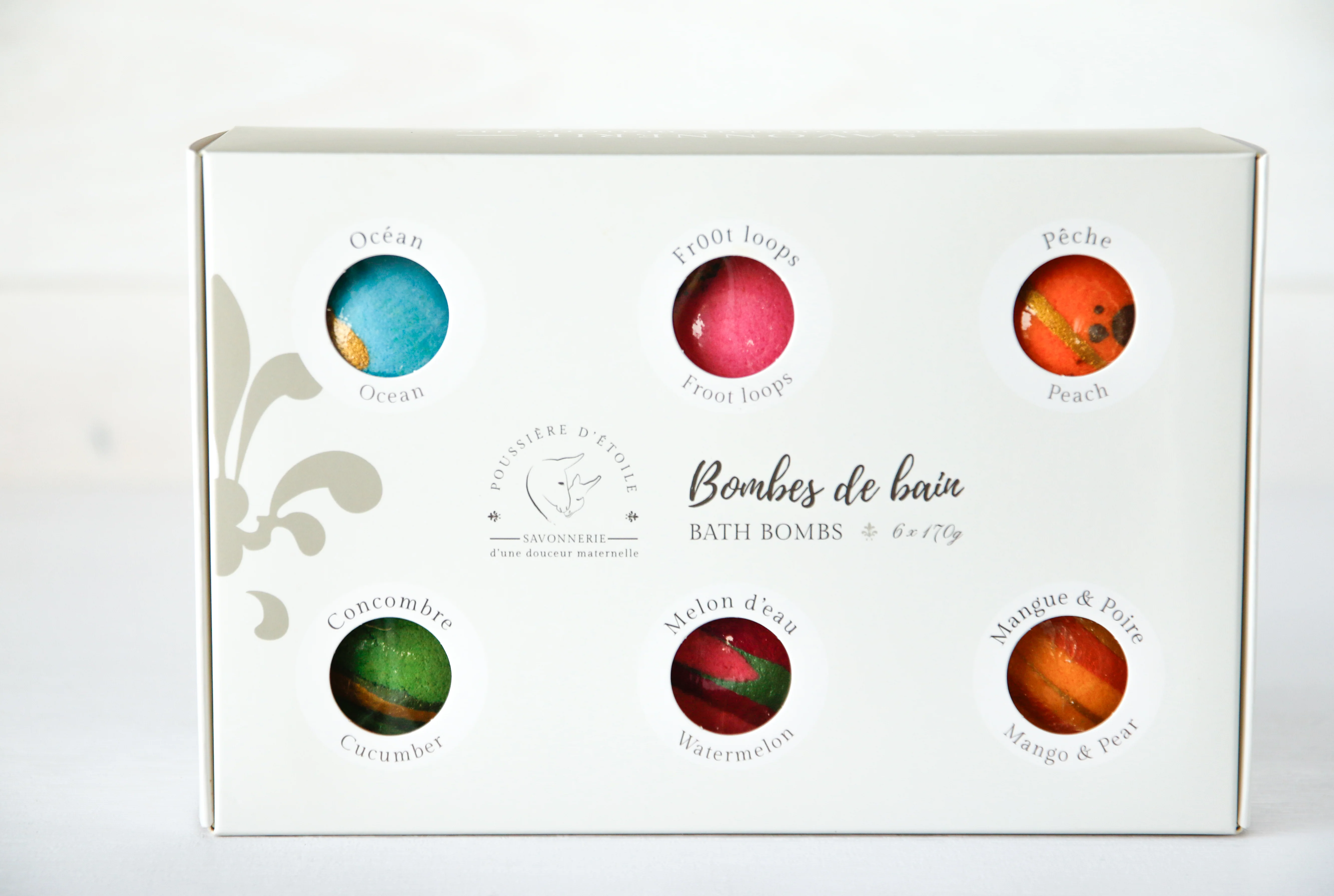 Voici ce que le coffret 6 Bombes de bain contient, à offrir à toute personne chère, ou pourquoi pas vous-même!