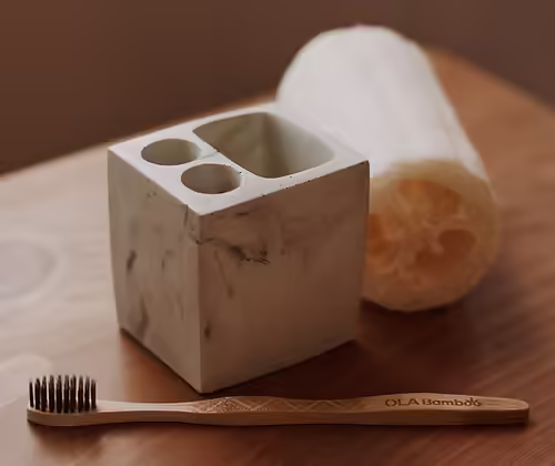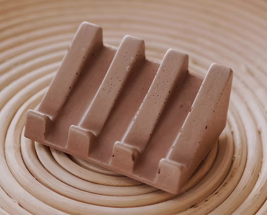 Porte savon en béton fait a la main En dessous, il y a quatre petites pattes de caoutchouc pour éviter le glissement. Scellé mat. Fabriqué à la main à Granby, Canada. Il y a de légères variations dans les bulles d’air et les tons des portes savons, ce qui rend chacun magnifiquement unique !