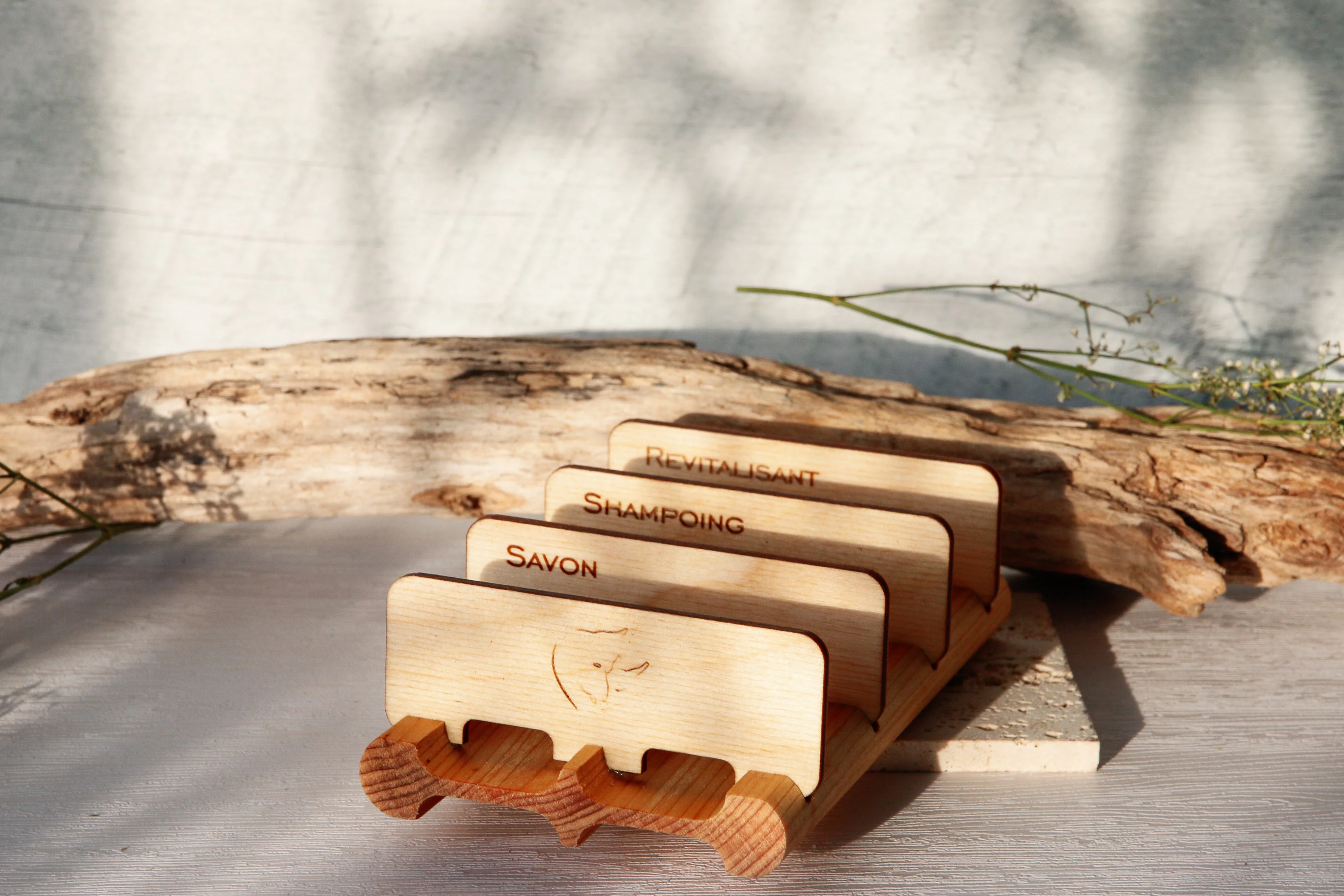 Ce support à savon triple fait à la main par un artisan du Québec et est taillé dans une seule pièce de bois. Il sera parfait dans votre salle de bain pour y déposer tous vos savons, shampoings et après-shampoing solides. Sa conception permet à l’eau de s’écouler naturellement. Vos soins solides peuvent respirer et sécher après chaque utilisation, c’est fou comme ça rallonge la vie d’un savon ou autre produits solides !