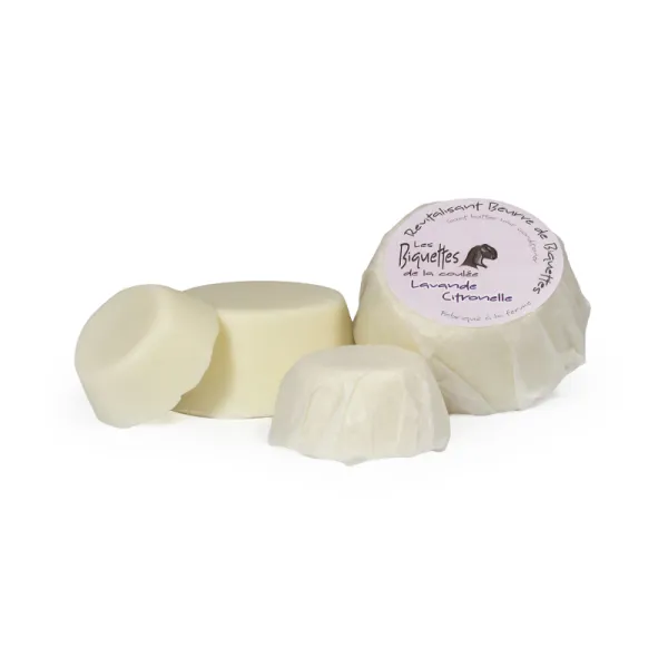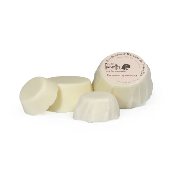 INGRÉDIENTS : Behentrimonium methosulfate, Cetyl Alcohol, Caprae butyrum (Beurre de chèvre des Biquettes de la coulée, Matane), Theobroma cacao seed butter (Beurre de cacao), Butylene Glycol, Parfum.