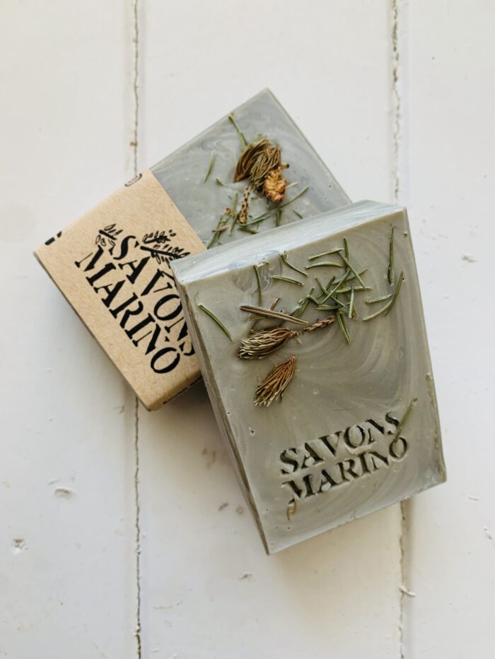 Ingrédients : Huile d’olive, beurre de noix de coco, beurre de cacao, huile tournesol, beurre de karité, huile de ricin, huile canola, eau, soude caustique, cire d’abeille, argile, huiles essentielles cèdre, sapin baumier, romarin, pin blanc et épinette noire, pigment naturel, fleurs en décoration/ olea europaea (olive) fruit oil, cocos nucifera (coconut) oil, theobroma cacao seed butter, helianthus annuus (sunflower) seed oil, butyrospermum parkii (shea)butter, ricinus communis (castor) seed oil, canola oil, water, sodium hydroxide, cera alba, argilla, cedrus atlantica wood oil, Abies balsamea (balsam canada) needle oil, rosmarinus officinalis (rosemary) leaf oil, pinus sylvestris leaf oil, picea mariana leaf oil, ultramarine, flower