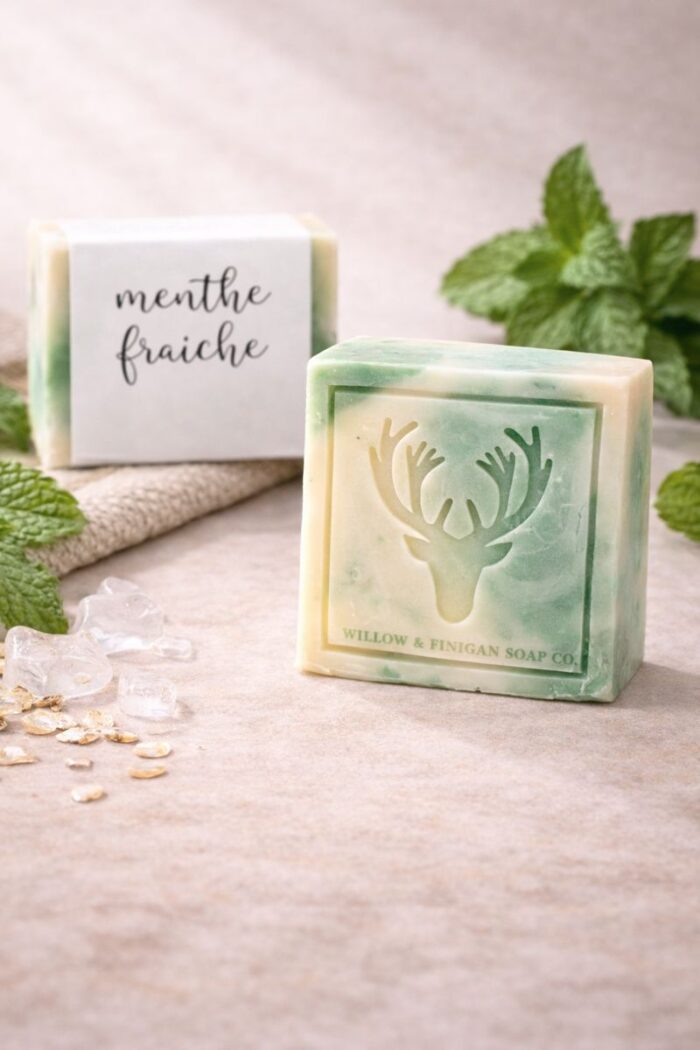 Grâce à son mélange d’huiles essentielles de menthe, ce savon offre une sensation de fraîcheur vivifiante. Formulé à partir d’ingrédients 100 % végétaux de première qualité, nos savons contiennent des huiles et beurres sélectionnés ainsi que des huiles essentielles soigneusement choisies. Nos produits respectent la nature tout en offrant une expérience sensorielle unique !