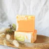 Beurre de karité: Aux propriétés nutritives, émollientes et antioxydantes, le beurre de karité apporte aux savons un toucher riche et crémeux. Le beurre de karité utilisé pour la fabrication des produits est issu du commerce équitable, et non raffiné.
