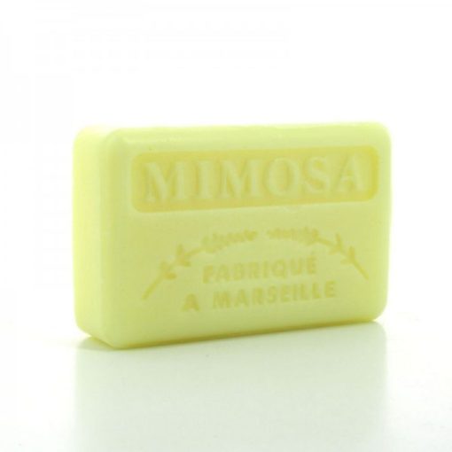 Savon artisanal parfumé à la fleur Mimosa. Enrichi au beurre de karité bio !