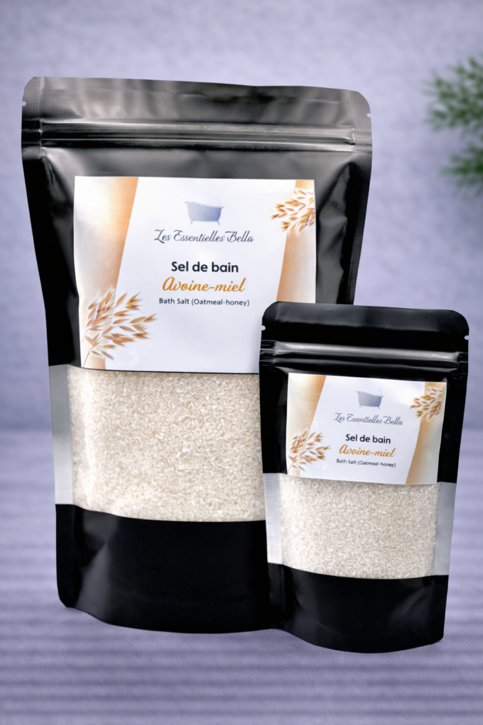 Un sel de bain conçu de sels d’Epson et d’avoine colloïdale avec ajout aromatique de miel. Il a comme bienfait d’hydrater et nourrir la région cutanée mais également de soulager les inconforts de la peau. Naturellement riche en magnésium, potassium, sodium et calcium, ces sels de bain sont nourrissants et hydratants !