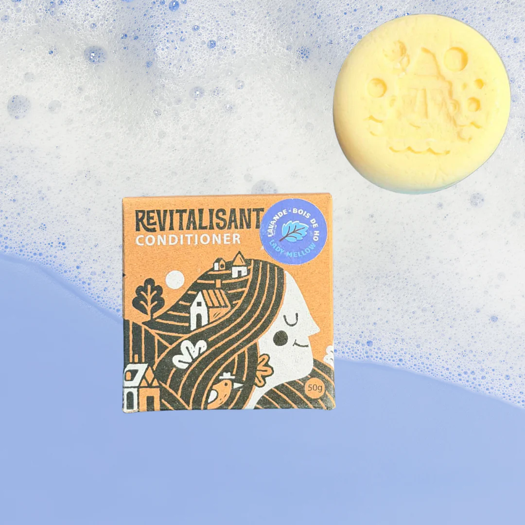 Le revitalisant solide Lady Mellow combine beurre de karité, beurre de cacao, protéines de riz et panthénol pour renforcer, adoucir et protéger la fibre capillaire. Les huiles essentielles de lavande, bois de Ho et patchouli apportent un parfum enveloppant et apaisant.