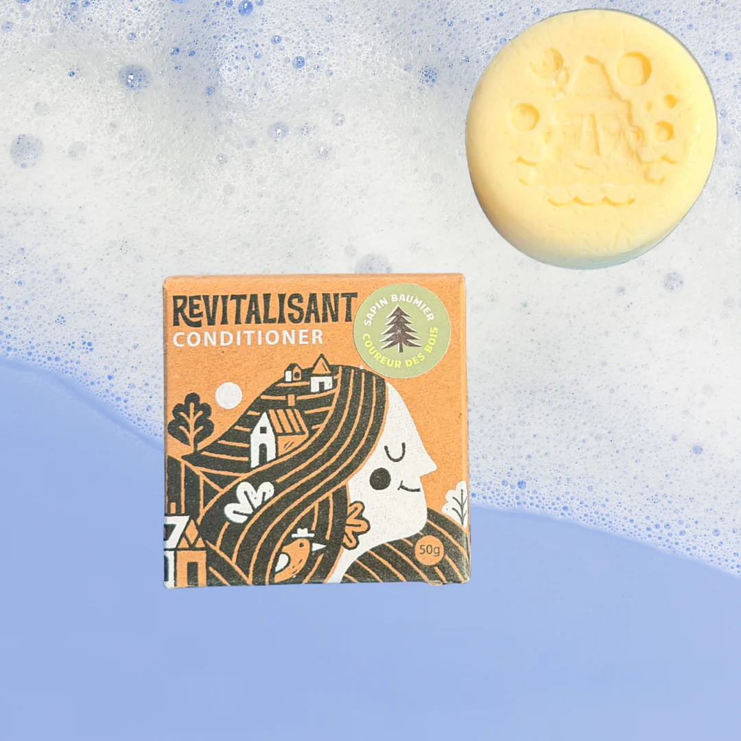Revitalisant solide forestier et frais, pour nourrir et adoucir les cheveux.